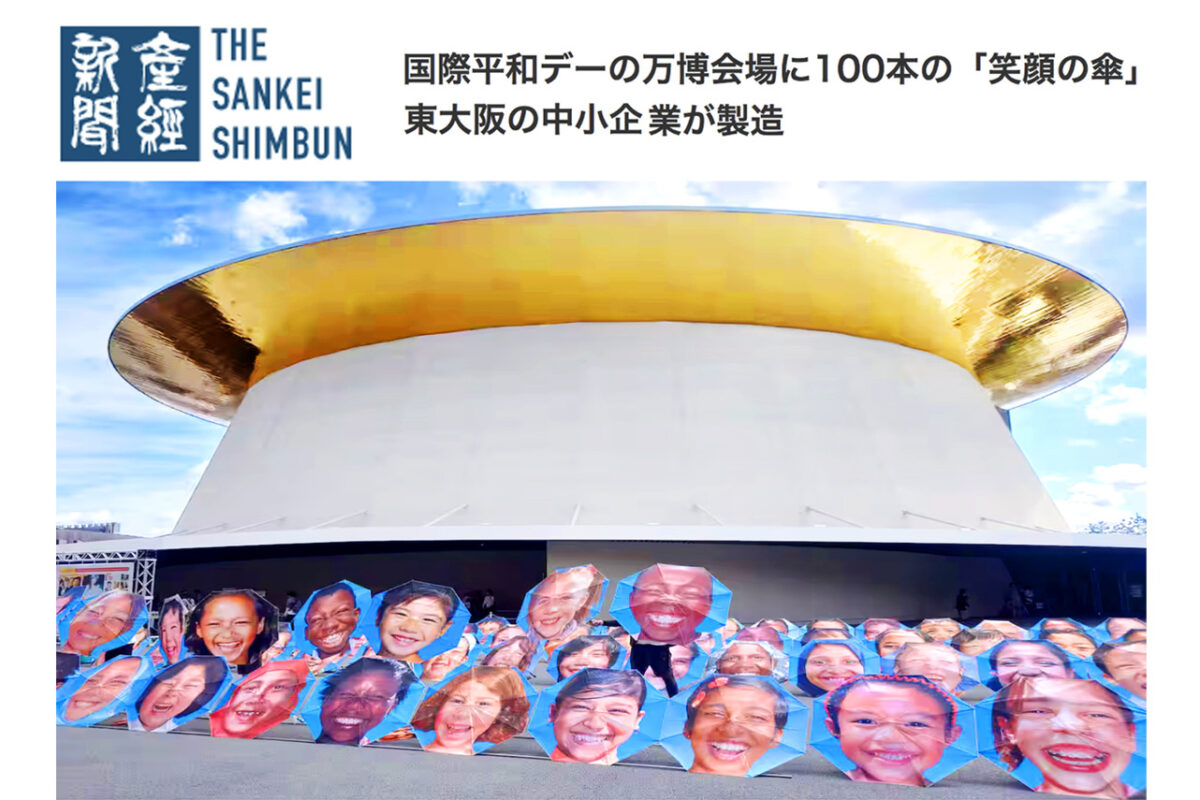 産經新聞「国際平和デーの万博会場に100本の「笑顔の傘」 東大阪の中小企業が製造」