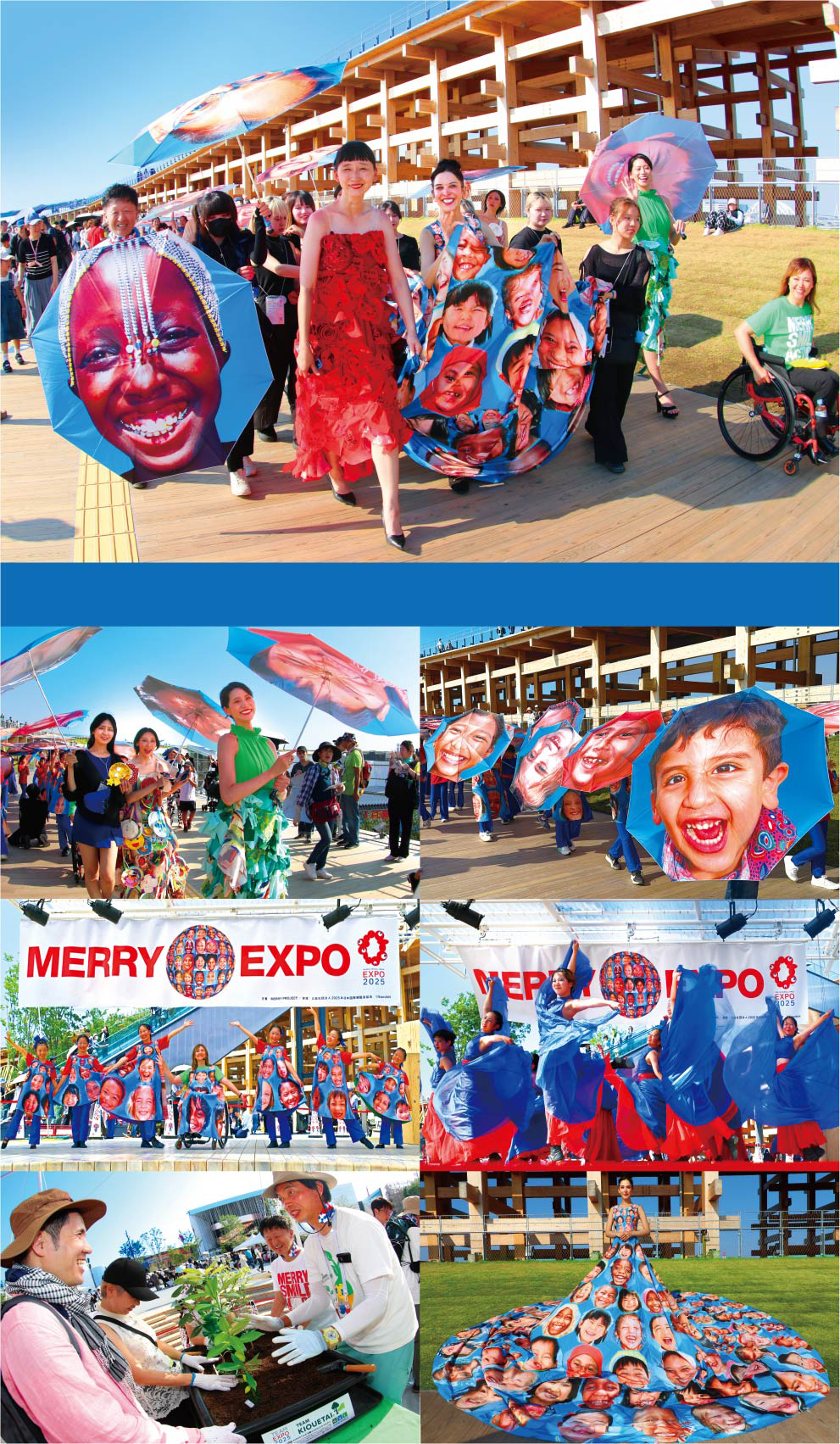 世界中の人々が平和を願う「国際平和デー」に開催される 「PEACEDAY 2025」と連携し、大阪・関西万博 EXPOホール「シャインハット」前で笑顔のインスタレーションを展開。平和の象徴である、世界中の子供達の笑顔の傘は咲き誇ります。