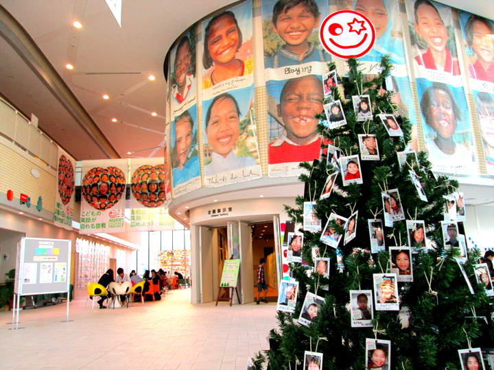 およそ160人の子どもたちの笑顔とメッセージが飾られています。