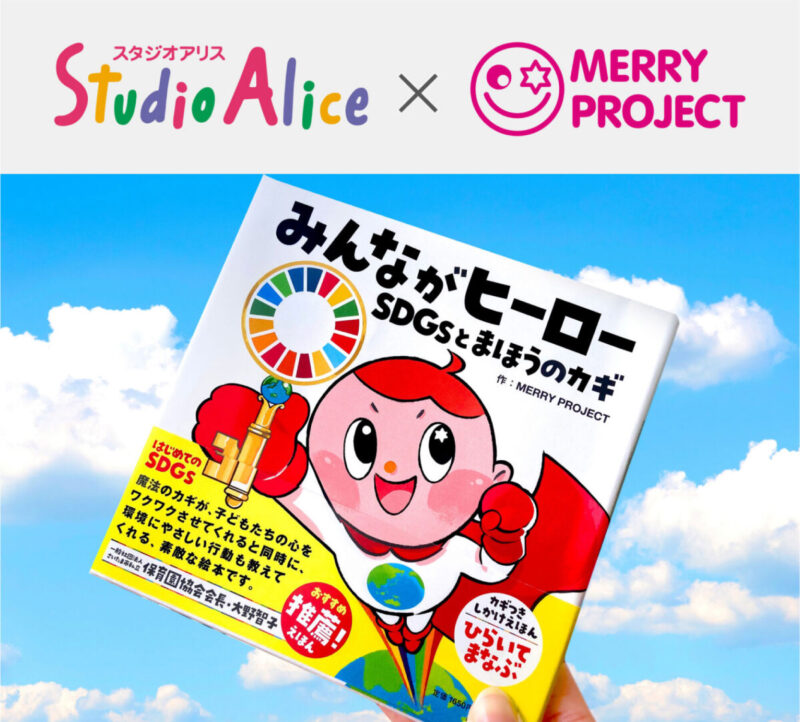 「子どもたちの笑顔」を共通のテーマに、スタジオアリスとMERRY PROJECTがコラボレーション!スタジオアリスが展開する「みんなで子育てPROJECT」にて、笑顔の力で人と社会、世界をつなげてきたMERRY PROJECTの活動とともに、子供達の未来につながるSDGs教育絵本として誕生した「みんながヒーロー SDGsとまほうのカギ」の特集ページが公開されました。