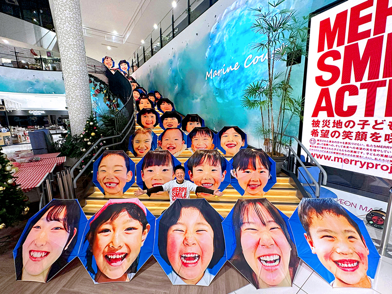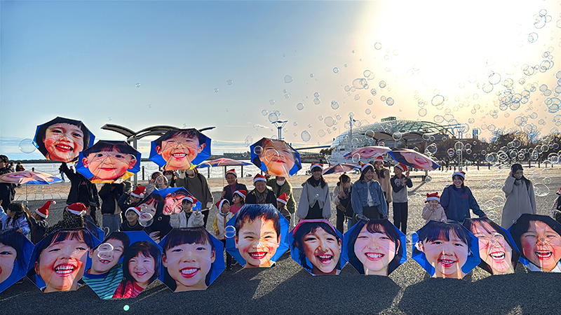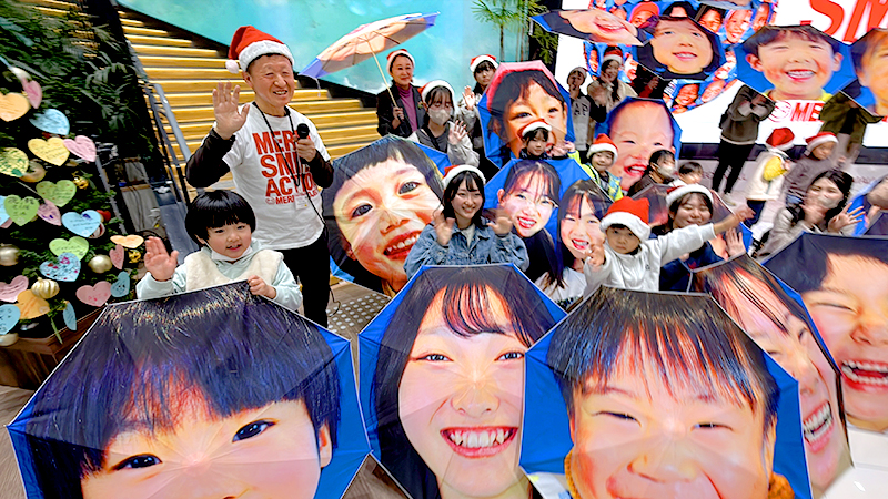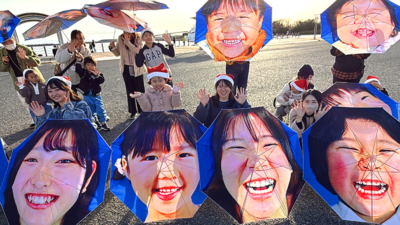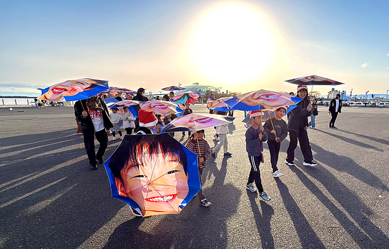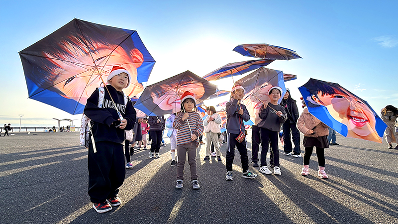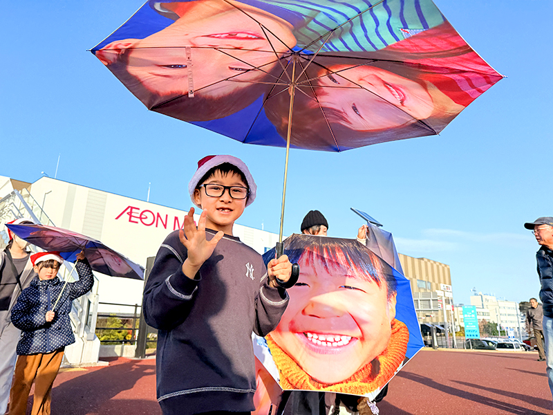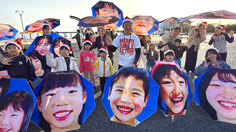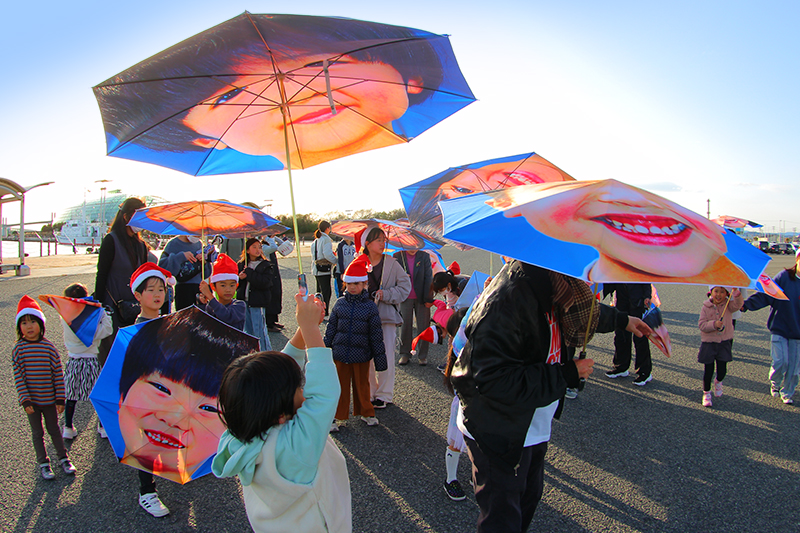 クリスマスを前に、NPO法人MERRY PROJECT(メリー・プロジェクト、東京都)は13日、福島県いわき市で「メリー・スマイル・クリスマス」と題したイベントを開いた。子どもたちが自分の笑顔がプリントされた傘を差して小名浜港周辺をパレードした。
