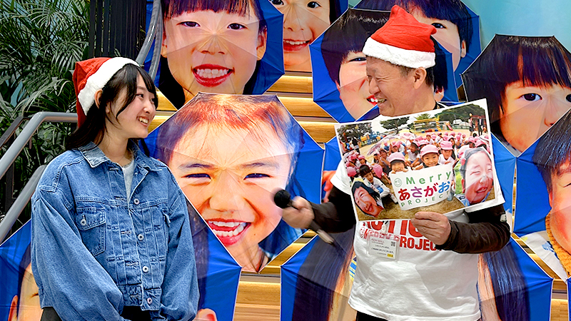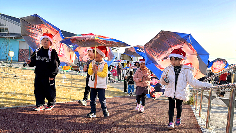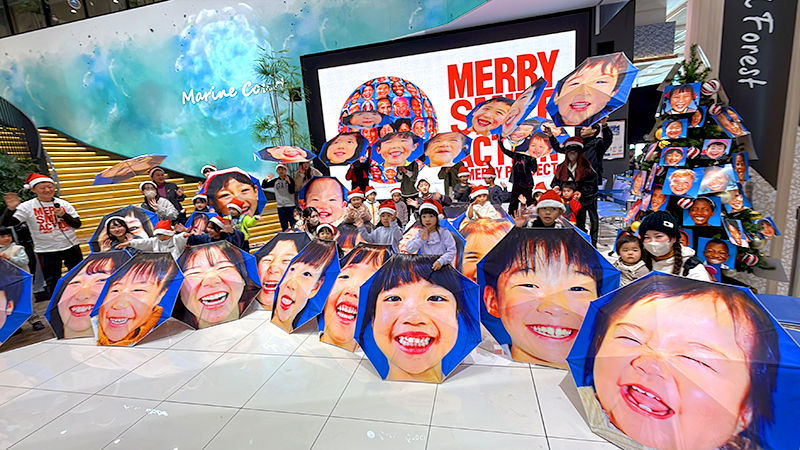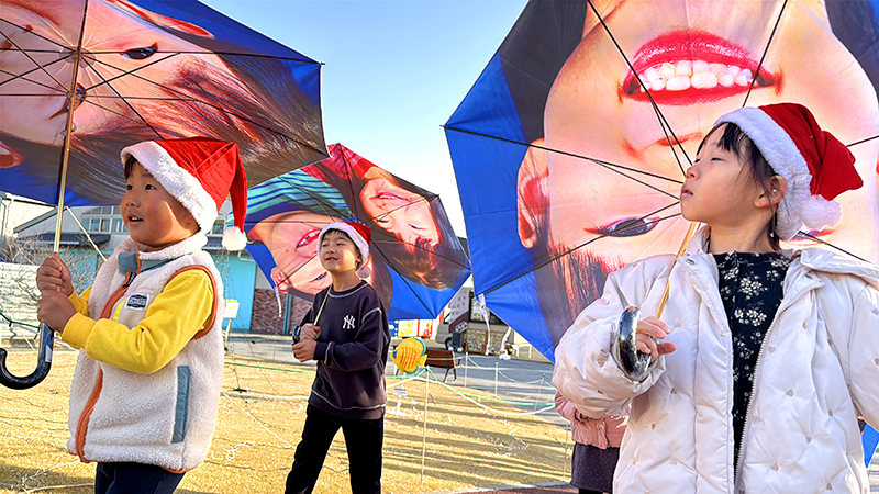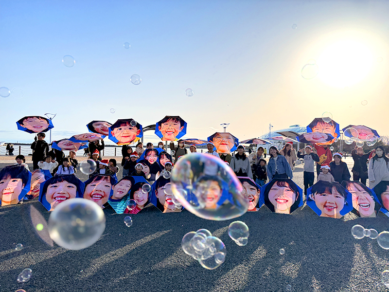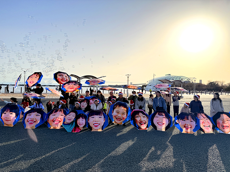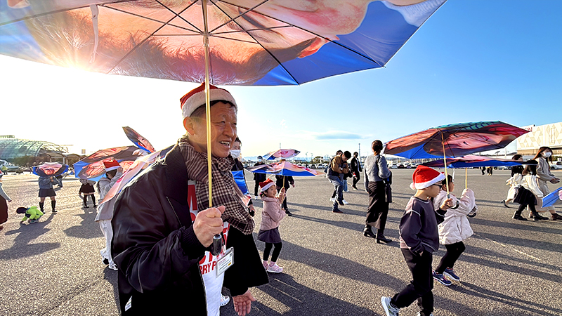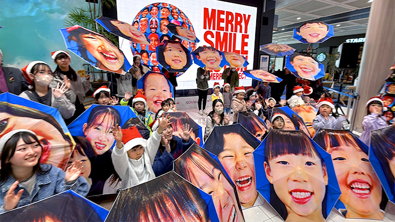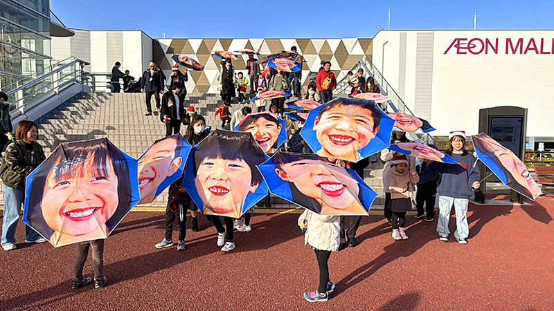 クリスマスを前に、NPO法人MERRY PROJECT(メリー・プロジェクト、東京都)は13日、福島県いわき市で「メリー・スマイル・クリスマス」と題したイベントを開いた。子どもたちが自分の笑顔がプリントされた傘を差して小名浜港周辺をパレードした。