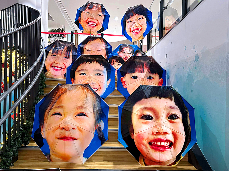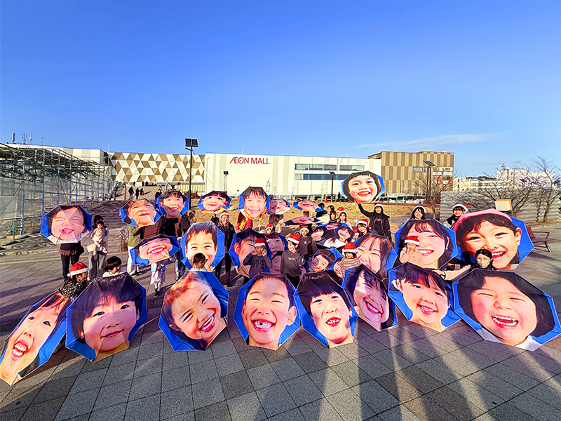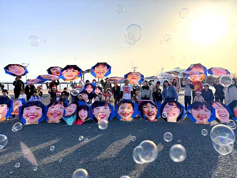 ずらりと子どもたちの笑顔の傘が並びました。