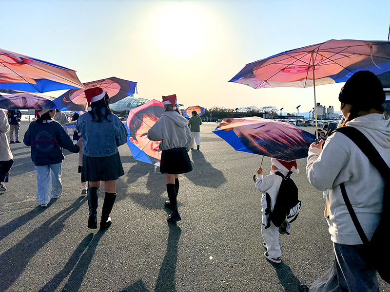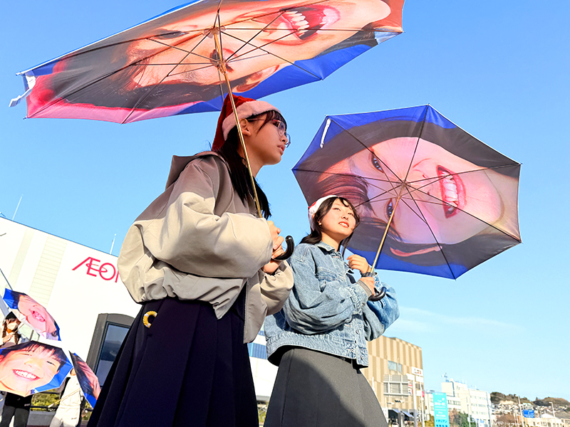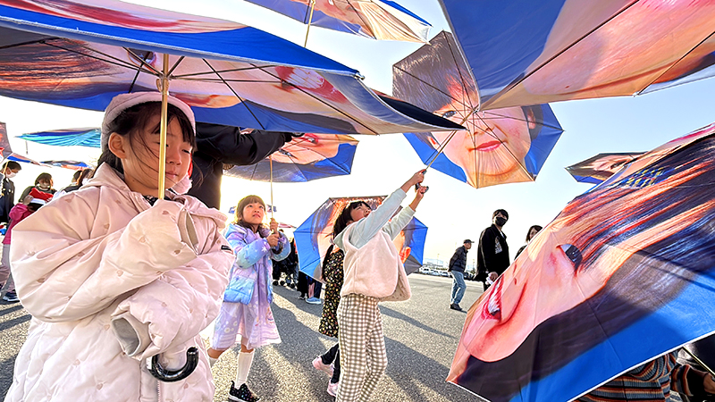 水谷の合図に合わせて、笑顔の傘がパッと開き、拍手と歓声が起こりました。