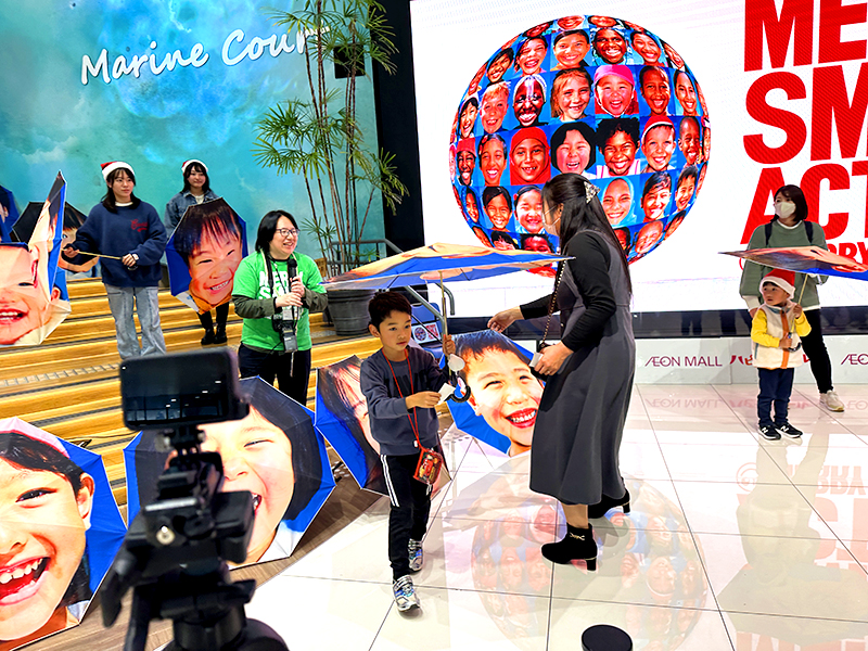 いよいよ、みんなに笑顔の傘を渡していきます。